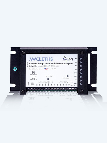 The current loop adapter makes you current loop data compatible in an Ethernet network and allows the data to be transmitted over wired or wireless mediums. Wireless current loop and serial technology from AvaLAN will enable flexibility, network control and ease of installation for fuel dispensers in a retail forecourt.